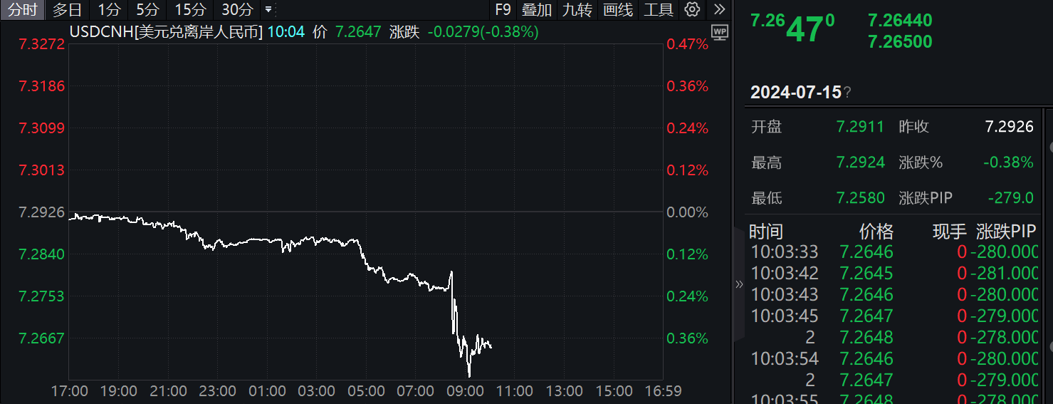 市场反应立竿见影,美元指数应声下跌,离岸人民币汇率显著升值近300点,美元对日元汇率也跌至158.31。